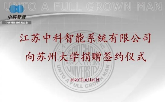 10月15日下午,江蘇中科智能系統(tǒng)有限公司向蘇州大學捐贈簽約儀式在江蘇中科智能系統(tǒng)有限公司舉行。