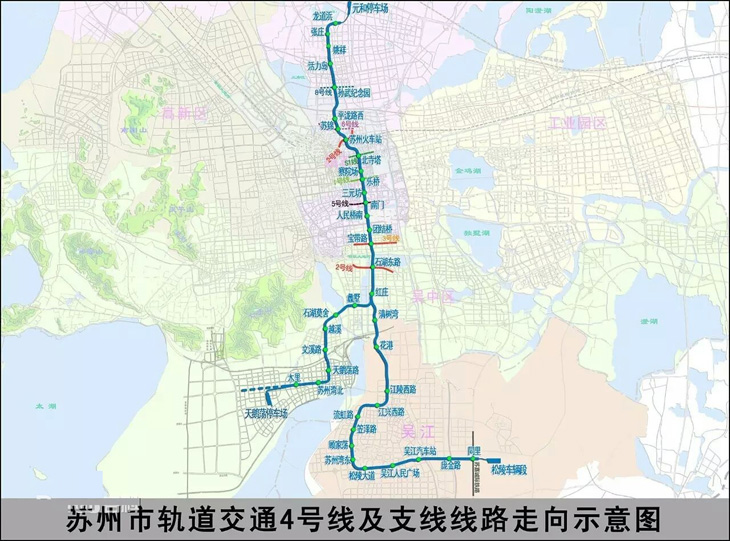 蘇州軌道交通4號線,呈南北走向,連接相城區(qū)、姑蘇區(qū)、吳中區(qū)和吳江區(qū),是蘇州城市發(fā)展的一條骨干線路。