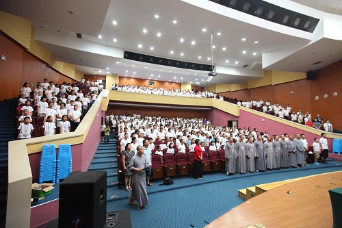 蘇州市民族宗教事務(wù)局蔣行順副局長(zhǎng),蘇州寒山寺方丈、蘇州和合文化基金會(huì)理事長(zhǎng)秋爽大和尚,蘇州寒山寺文化研究院姚炎祥院長(zhǎng),蘇州和合文化基金會(huì)吳聲秘書(shū)長(zhǎng),蘇州弘化社總干事宋浩居士,著名評(píng)彈表演藝術(shù)家、國(guó)家一級(jí)演員邢晏芝女士,江蘇中科智能工程有限公司董事長(zhǎng)查磊先生,蘇州市科迪石化工程有限公司董事長(zhǎng)顧軼群女士,上海一潤(rùn)茶業(yè)有限公司董事長(zhǎng)周東香女士,及參加夏令營(yíng)的兒童營(yíng)員、志愿者等近千人參加了開(kāi)幕儀式。